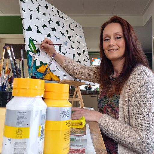 Marieke is inspired by nature and the infinite number of colours the pallet has. Colors inspire her through the emotions they loosen and through the many combinations that are possible. This is reflected in her paintings, they are cheerful decorative works of art that give a room colour and warmth. She has her studio at home and is regularly trying to capture her colourful fantasies on canvas.